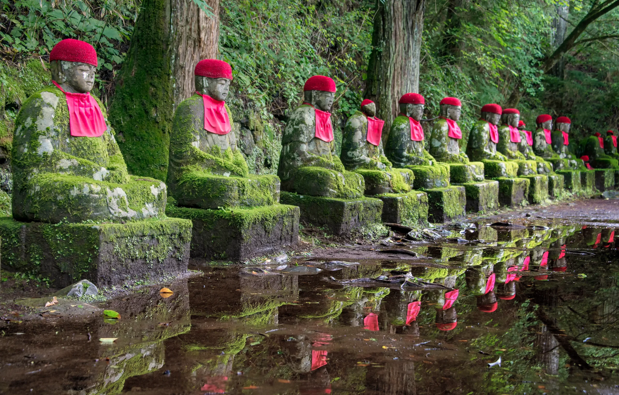 Kanmangafuchi Abyss (憾満ヶ淵) near Nikko, is a breathtaking gorge formed by Mount Nantai’s eruption. A serene walking trail winds along the river, offering peaceful views for nature lovers. Along the path, around 70 Jizo statues—also known as Bake Jizo or Ghost Jizo—stand silently, gazing toward the Nikko Botanical Garden. This enchanting site blends natural beauty with spiritual charm, making Kanmangafuchi Abyss a must-visit destination for travelers seeking both scenery and cultural heritage.